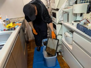 楽しみに待っていたお掃除の日。なんと、なんと、代表の荒井さんもスタッフとして我が家へ(゜0゜)