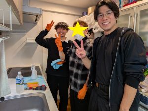 社会サンカク事業担当の中嶋直人さんと若者、荒井さんの3人で、台所のレンジフード、トイレ、浴室をピカピカにしてくれました(≧。≦)