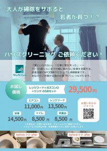 先月のメルマガで、若者の雇用創出としてハウスクリーニング事業を始めたと知り、さっそく我が家のクリーニングをお願いしました。