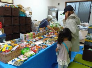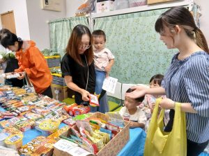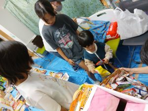 昼頃から降り出した雨の中、午後のフードパントリーに来た子どもたちは、お菓子の種類が豊富だったせいか、いつにも増してお菓子選びに真剣に取り組んでいましたよ(^_^;)