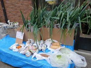 パントリー開始直前に、長野県の菜園から、自ら収穫した長ネギ、大根を届けてくださった匿名のYさんご夫妻(^ー^)