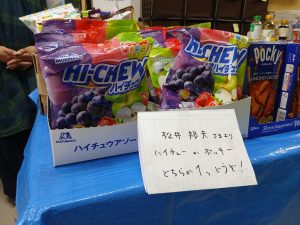 お菓子が入っている段ボールの絵は、野菜を送ってくださる日鉄ケミカル&マテリアル豊洲農園の皆様の作品です。