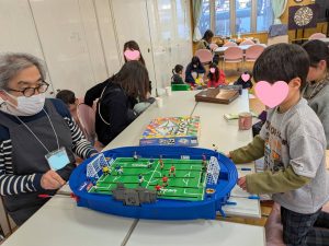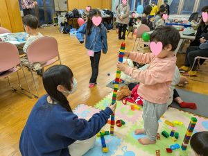 ものすごい強風で外遊びもあまりできず、室内でトラブルが起きないか心配でしたが、参加ボランティアさんたちの獅子奮闘ぶりが素晴らしく、なんとか無事に、みんな楽しく、遊びコーナー、学びコーナーで過ごすことができました(^。^)