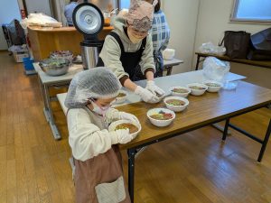 1月10日、2026年最初のあおとこども食堂は子ども34人、保護者23人、ボランティア10人、見学1人の合計68人が参加。お弁当は87食の提供でした。