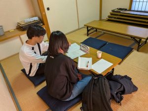 学びコーナーでは中学生が「遣隋使」について大学生に聞いていましたよ(⌒^⌒)