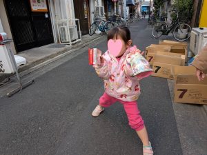 ぐっすり寝ちゃった子はスタッフが抱っこして、お母さんが食品を選ぶのを待ちます(^_^;)