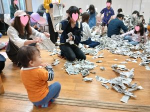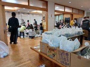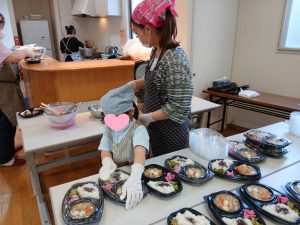 4月25日、新緑が鮮やかな春のあおとこども食堂は、子ども39人、保護者26人、ボランティア25人が参加。お弁当は90食の提供でした。