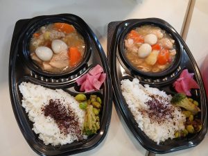 お弁当は、調理スタッフによると「ジャガイモが溶けてしまった」鶏じゃが弁当(´∀`)