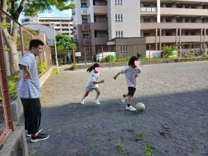室内ではベイブレード、工作コーナーなどで和やかに過ごし、外ではサッカーや恒例の鬼ごっこ(^^)